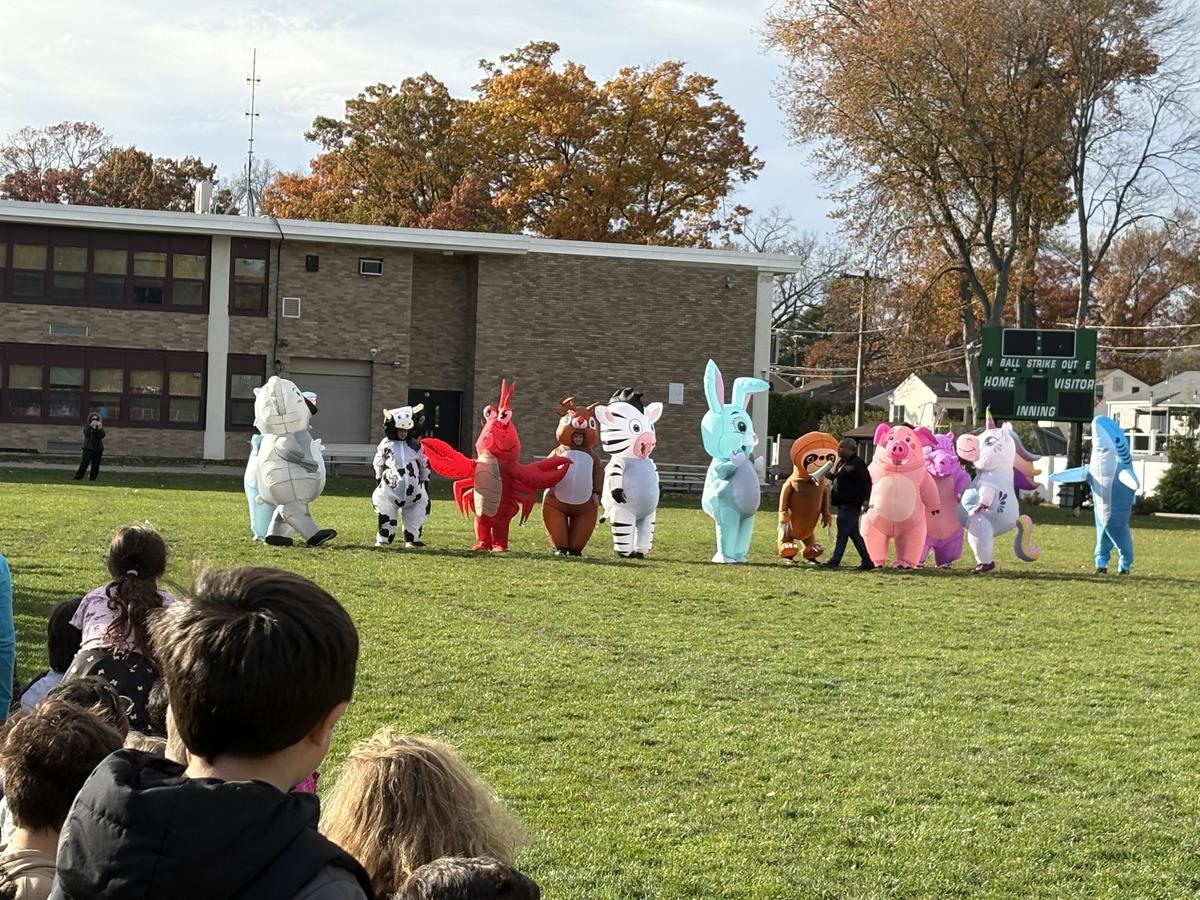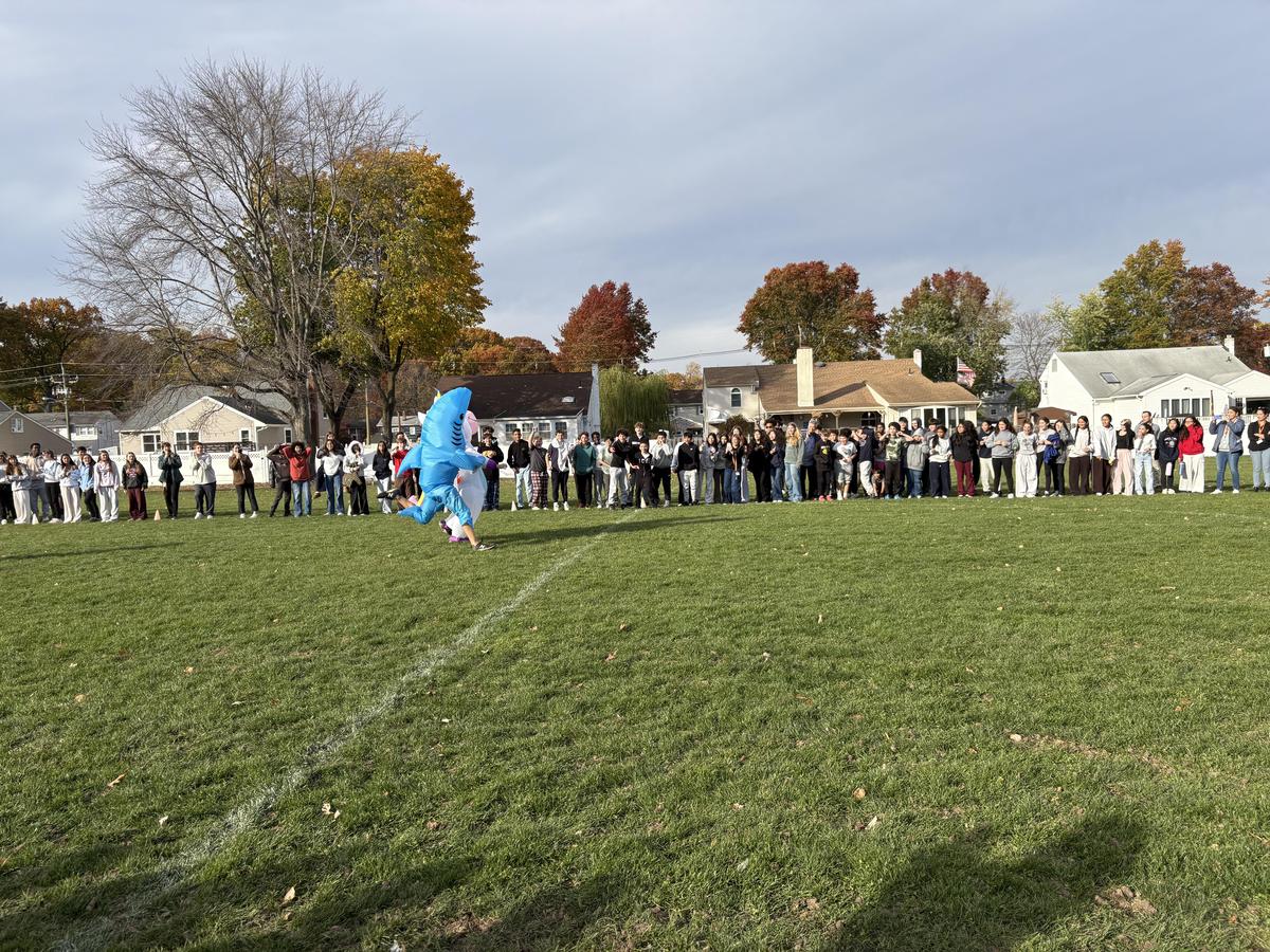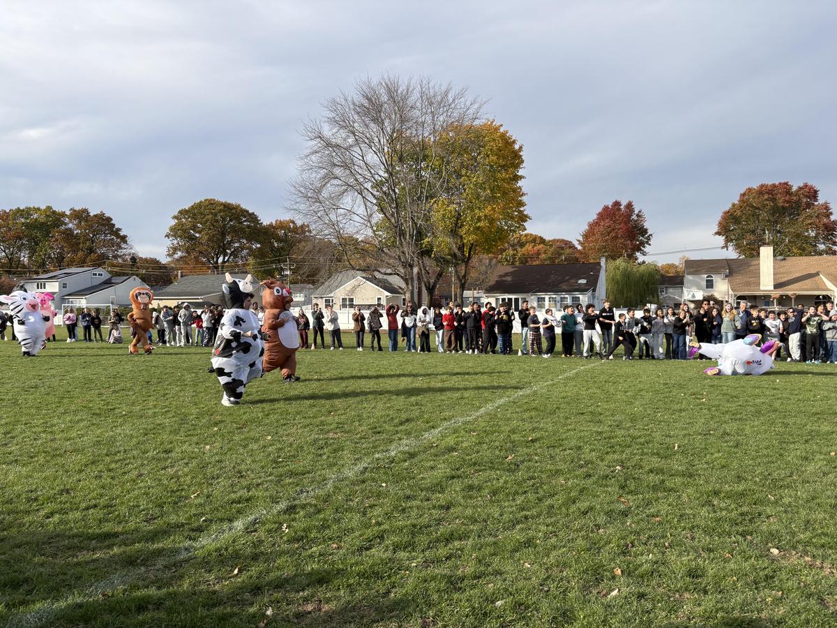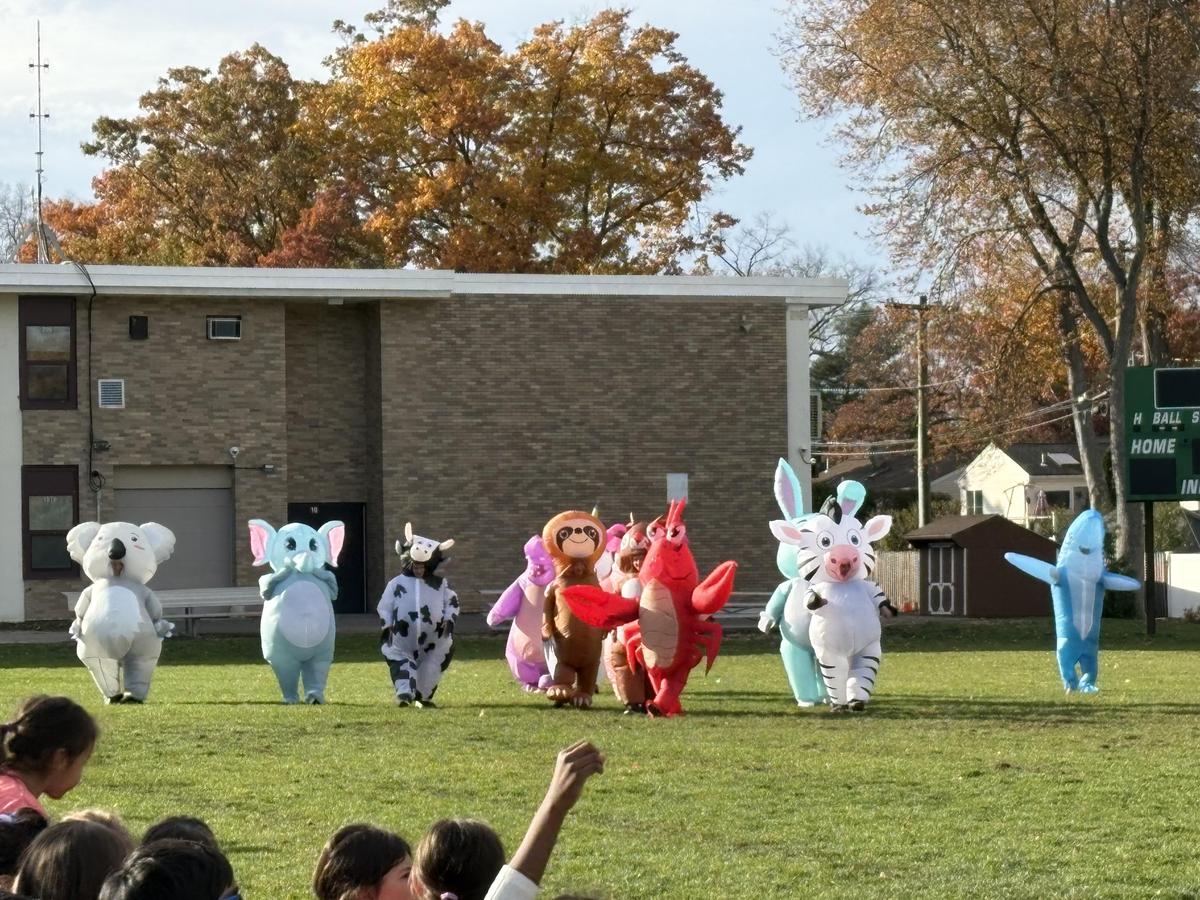 When students have to come to school for only two days for one week in November, then why not do something fun to make it worth the short week? Selzer staff from elementary to middle school teachers and paraprofessionals got involved in this PTO fundraiser. Wearing inflatable suits while running the length of the soccer field at Selzer school, staff members gave it all they had to cross the finish line first. Who won? That's up for student debate as they believe cheating could have been used. No matter who won or lost the race at hand, it was fun for the entire school community to enjoy and remember as a good laugh had by all.